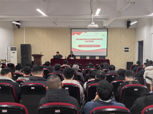 12月23日下午,国产成人视频 召开全体党员教职工大会,开展理论学习。特邀淮南师范国产成人视频党委常委、党委宣传部部长、党委统战部部长赵宁作《高校面临的意识形态领域风险挑战与应对举措》专题报告。报告会由国产成人视频党委书记徐关怀主持。