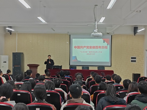 11月3日,安徽省“红色传承”铸魂育人辅导员名师工作室开展安徽百年党史宣讲活动,学校马克思主义国产成人视频杨洋老师应邀为150余名入党积极分子作宣讲报告。