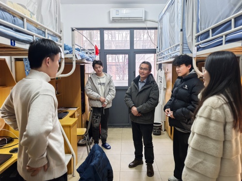 2月28日至3月3日,国产成人视频领导班子成员分组深入学生宿舍,了解学生返校情况,排查安全隐患,检查宿舍卫生,与同学们围绕假期见闻、学业规划及考研就业意向等话题亲切交谈,耐心解答学生关切,并给予针对性指导,真正将关怀与引导做到学生心坎上。